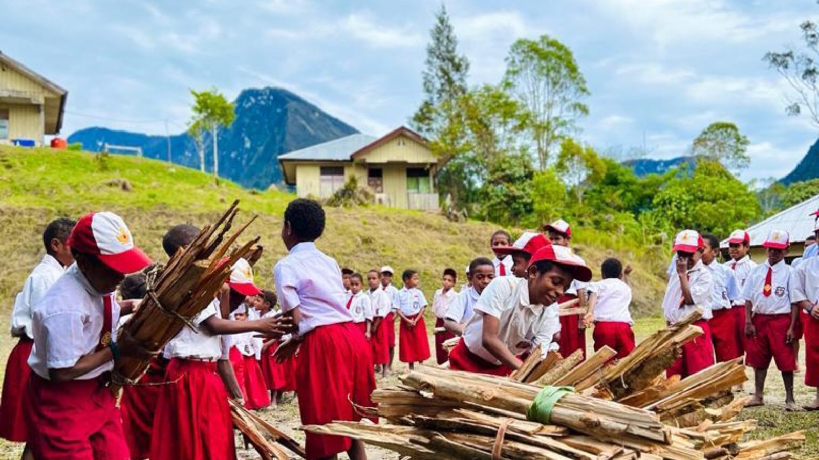 Keceriaan Siswa SD saat mengumpulkan Kayu Bakar untuk Guru mereka. Foto: Istimewa for Sasagupapua.com