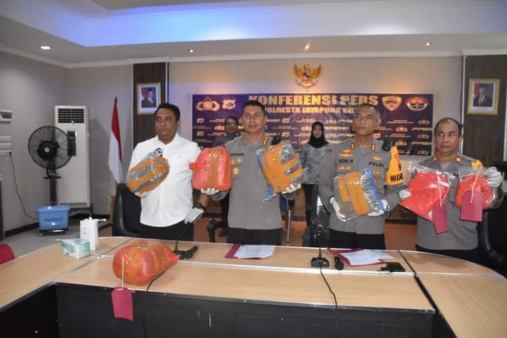 Hal tersebut diungkapkan Kapolresta Jayapura Kota Kombes Pol Dr. Victor D. Mackbon, S.H., S.IK., M.H., M.Si didampingi Wakapolresta AKBP Deni Herdiana, S.E., S.H., M.M., M.H, Kasat Resnarkoba AKP Febry V. Pardede, S.T.K., S.I.K dan Kasi Humas AKP Muhammad Anwar saat menggelar konferensi pers kepada awak media bertempat di Mapolresta Jayapura Kota, Jumat (25/10) pagi.