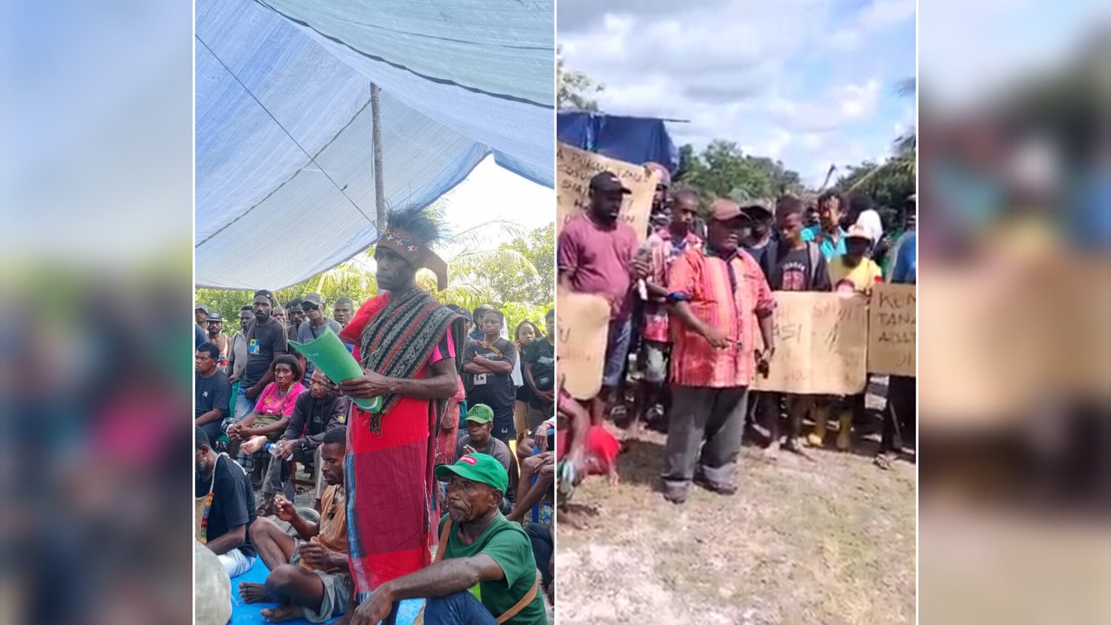 “Kami berulangkali menyatakan menolak perusahaan perkebunan kelapa sawit di tanah adat ini, tapi kenapa datang lagi paksa kami menerima rencana busuk ini? Tanah ini buat kami punya anak cucu hidup,” kecam Mama Grice di tengah kerumunan massa.